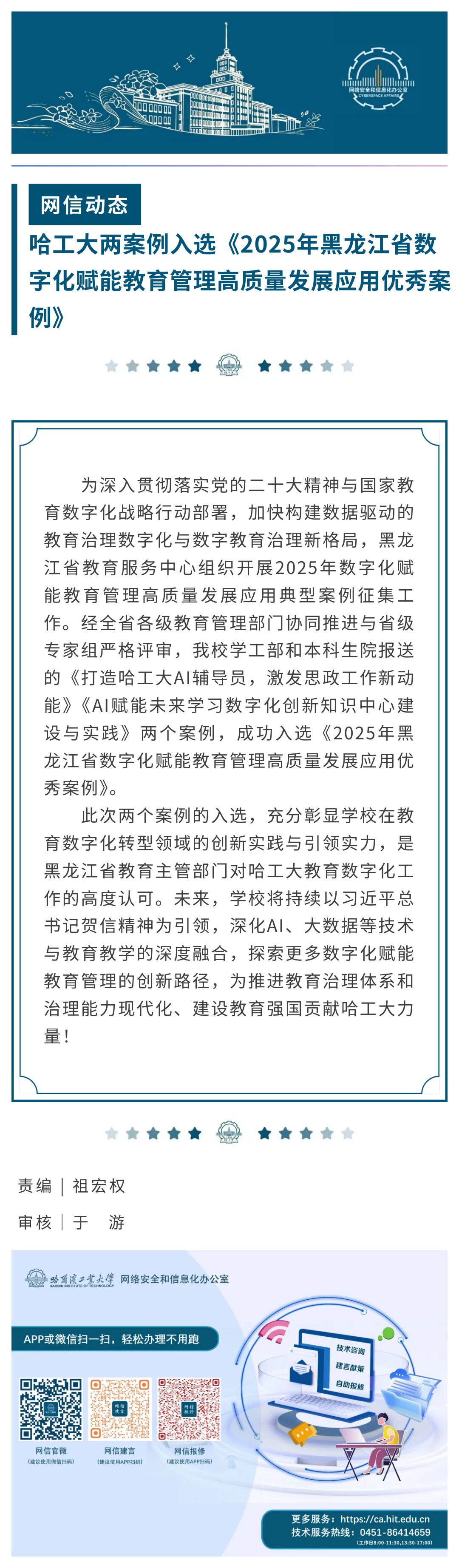 哈工大两案例入选《2025年黑龙江省数字化赋能教育管理高质量发展应用优秀案例》
