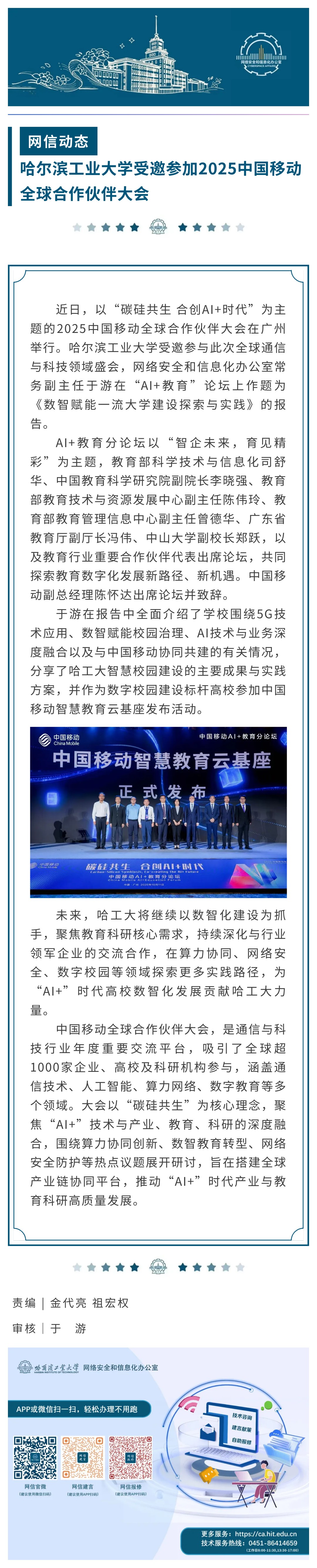 哈尔滨工业大学受邀参加2025中国移动全球合作伙伴大会