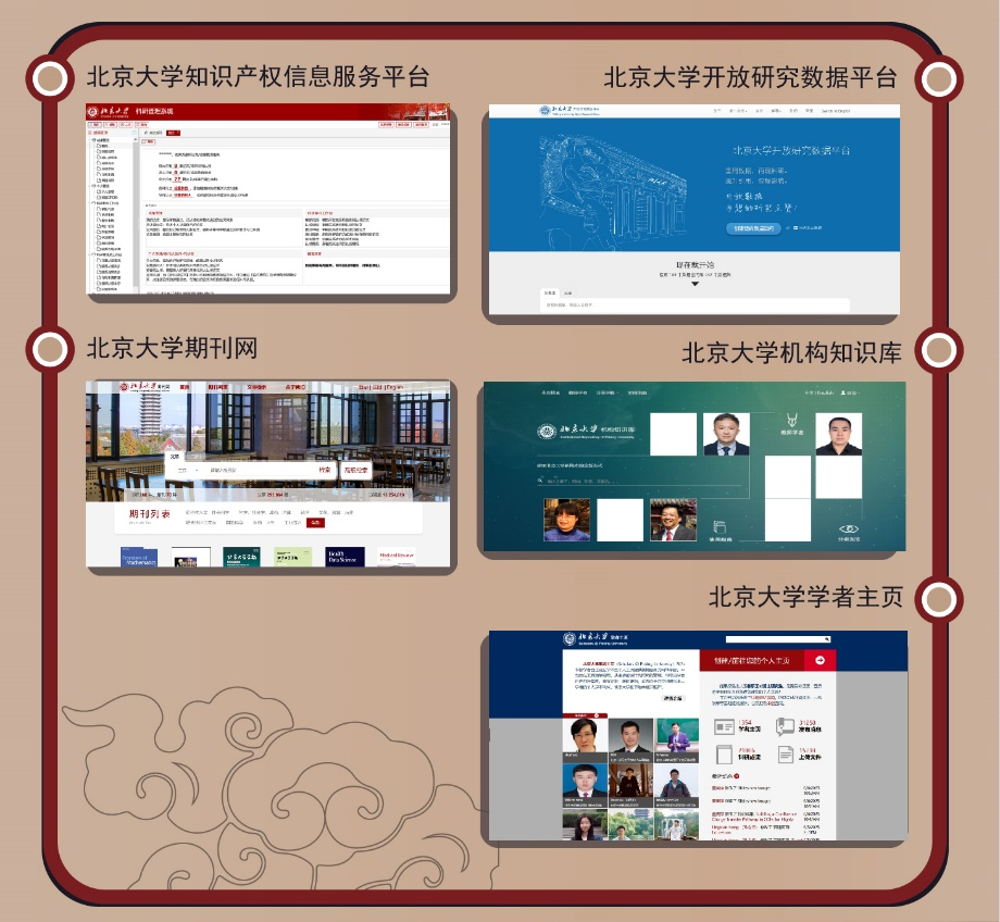 北京大学图书馆持续推进学术资产体系建设,全方位支持学校学科建设。北京大学机构知识库嵌入学校科研管理系统,北京大学知识产权信息服务平台优化学校知识产权信息服务流程,北京大学开放研究数据平台、北京大学学者主页、北京大学期刊网等网站为学校教师,科研人员和学生的学术研究和交流提供保障。