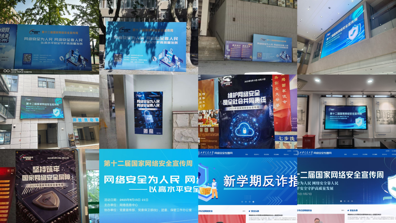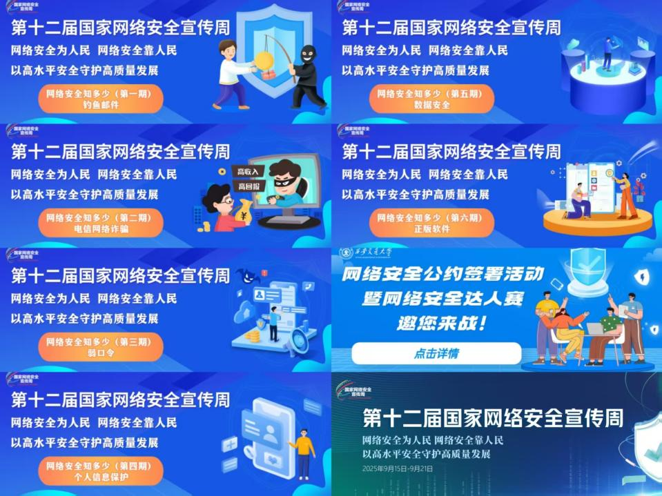 线下,结合2025年活动主题,精心制作网络安全知识宣传展板、海报及科普手册,在兴庆、雁塔、创新港三个校区设立宣传点,并利用创新港楼宇内外多处醒目电子屏进行扩大宣传,多层次、多角度,让网络安全知识入心入脑,切实提高师生网络安全保护意识和能力,营造浓厚的网络安全宣传教育氛围。