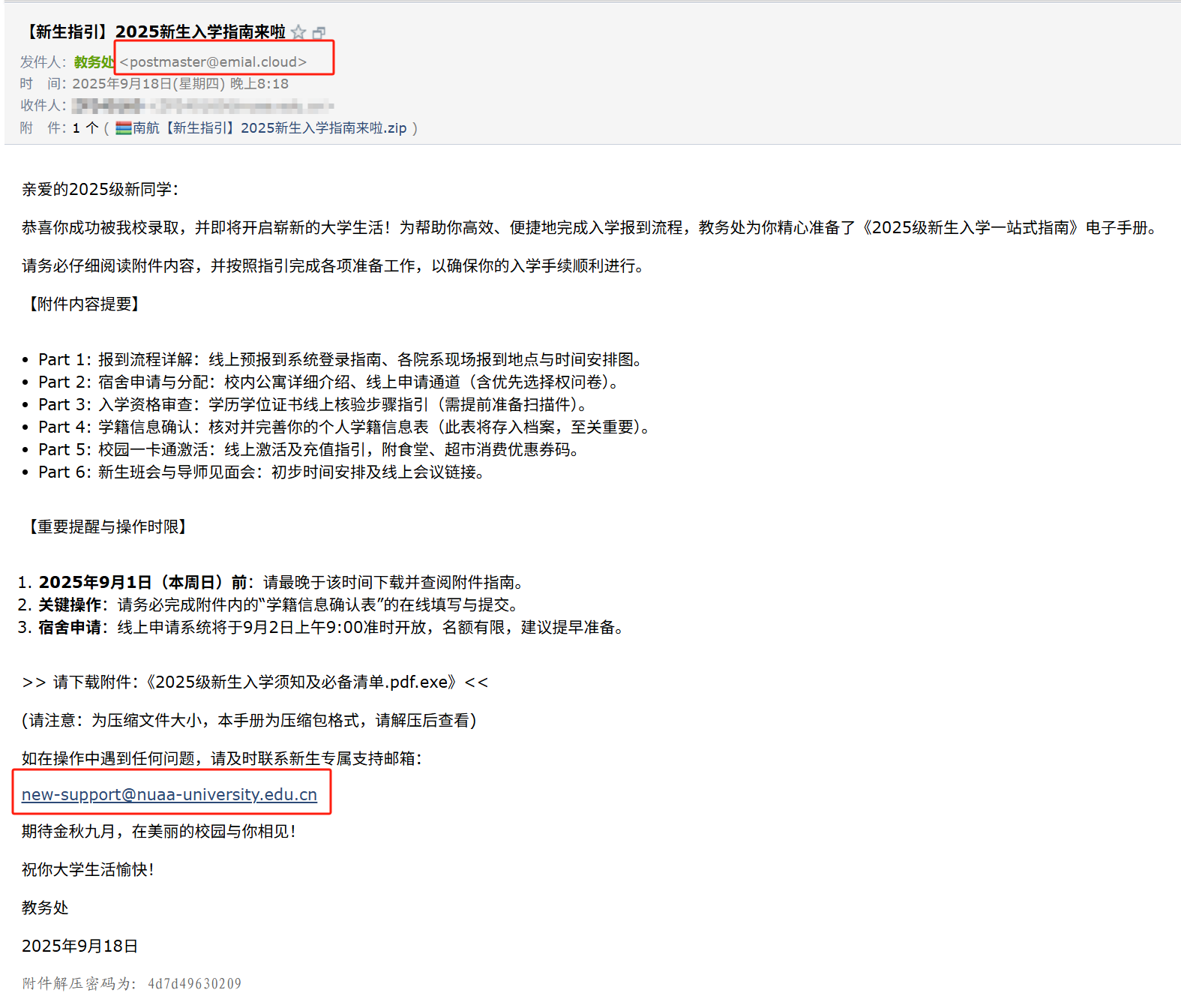 此次网络安全宣传周期间,信息化处开展了钓鱼邮件演练活动,围绕“账号异常登录”、“认证系统密码升级”以及“新生入学指南”、“正版化软件安装”四个主题,共计发送一万封钓鱼邮件。