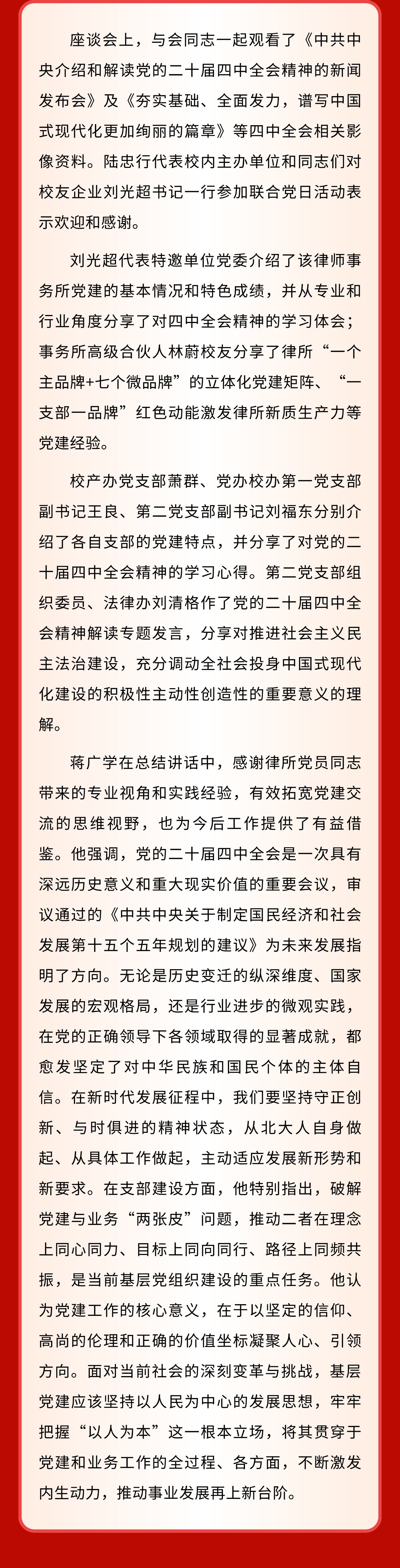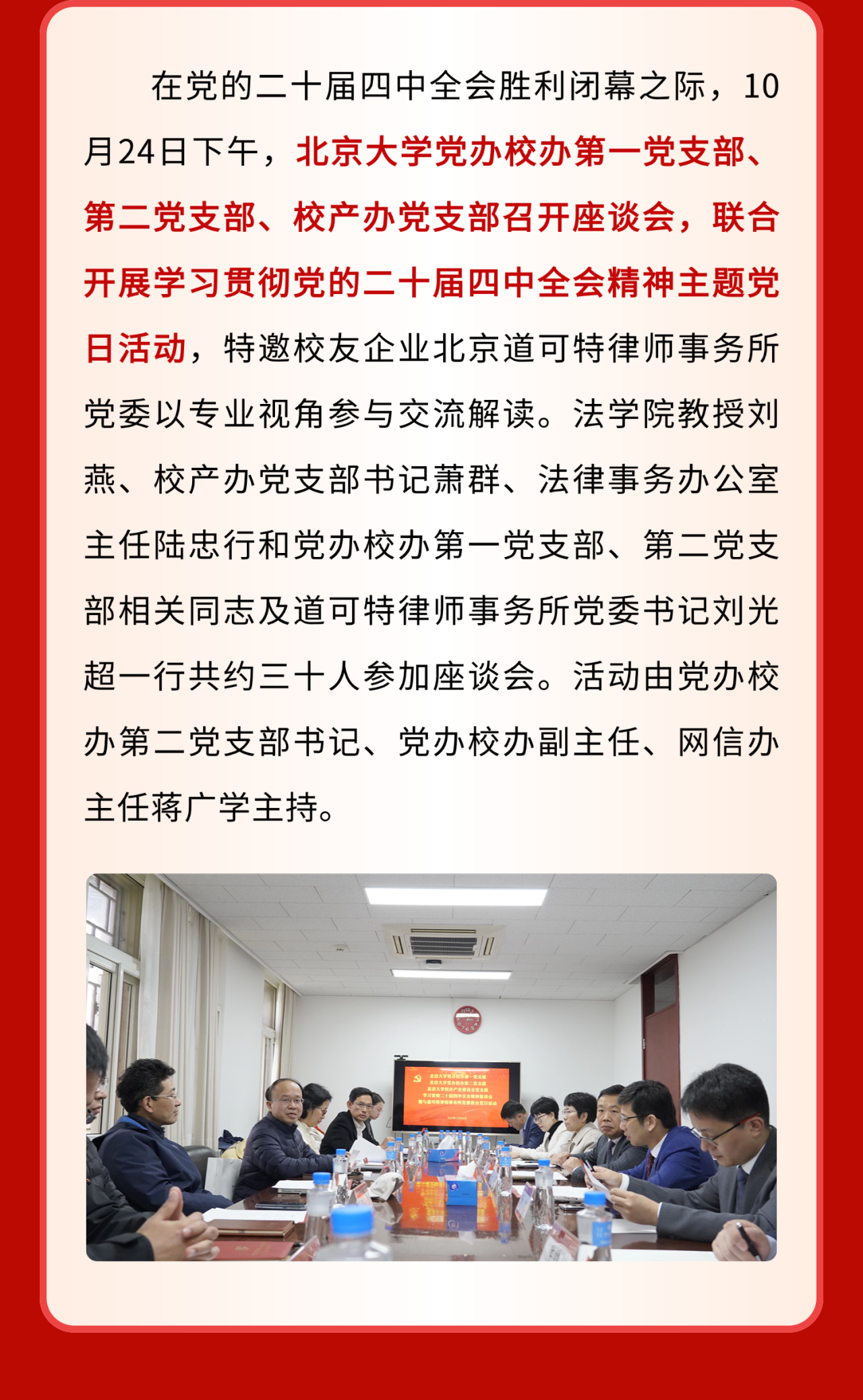 北京大学党办校办第一、第二党支部、校产办党支部与校友企业党组织联合开展学习贯彻党的二十届四中全会精神主题党日活动