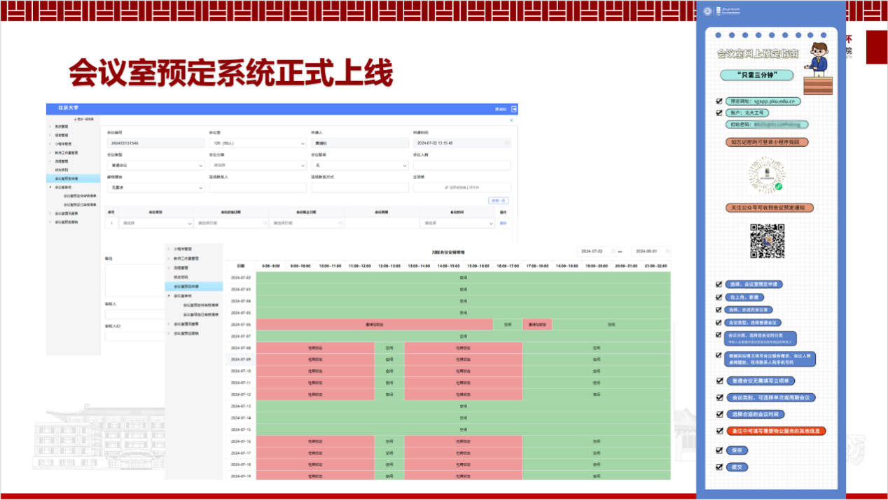 在服务端,历经半年试运行、于2024年9月正式上线的“学院会议室预订系统”,相比以往人工协调、线下处理的模式,能更高效地实现公共空间资源的在线化、智能化配置,为全院师生的学习工作提供便利。